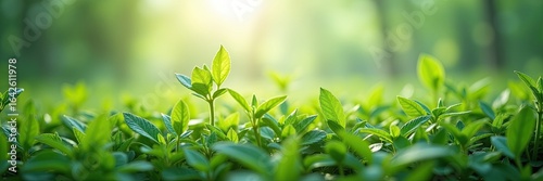 Close-up view of fresh green leaves in a lush garden.