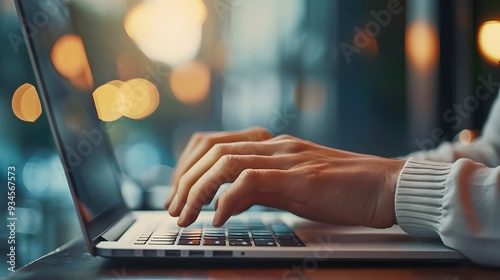 Closeup view of hands typing on a laptop demonstrating productivity AI generated illustration