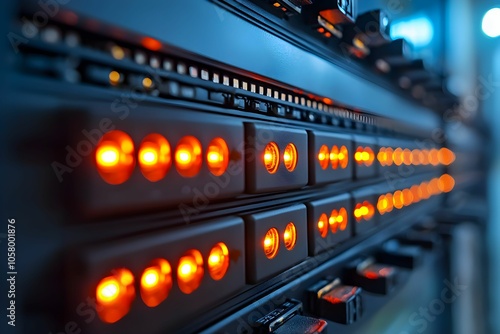 Close-up view of illuminated control panel at a tech facility