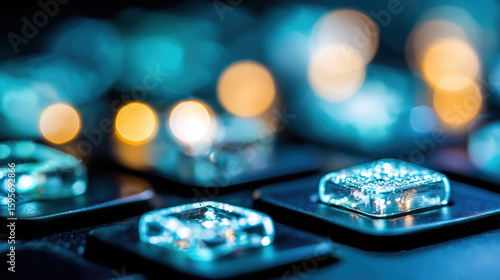 Close-up view of illuminated keyboard keys in a dynamic workspace setting