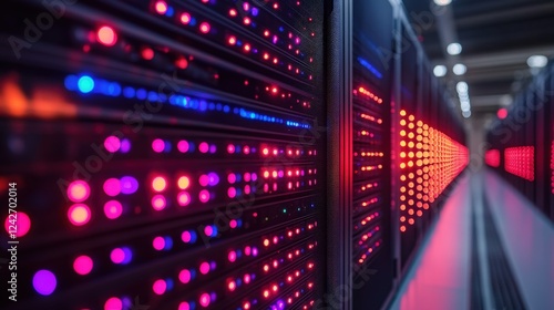 Close-up view of illuminated server racks in a data center with vibrant LED lights (1)