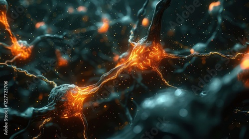 Close-up view of interconnected neurons with glowing synapses, illustrating neural activity in a digital environment