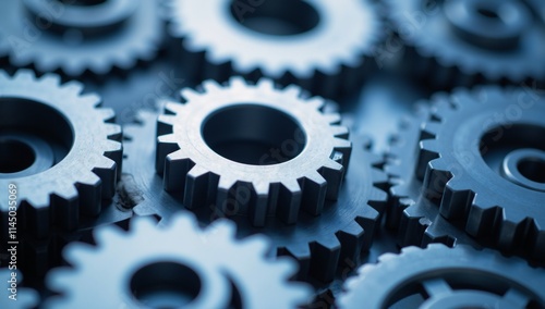 Close-up view of intricate blue gears symbolizing mechanical artistry within industrial machinery