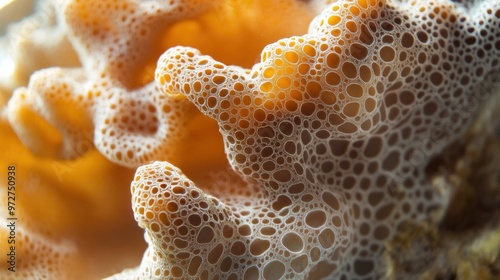 Close-up view of intricate coral structure showcasing natural patterns and textures in a vibrant marine environment