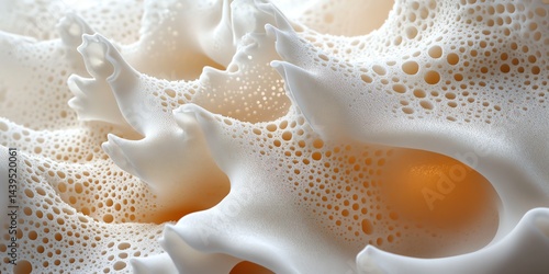 Close-up view of intricate foam texture on a shell-like surface with soft colors