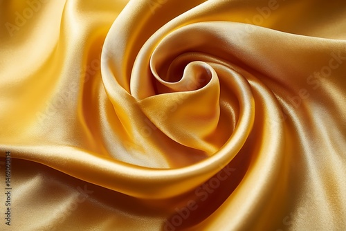 Close-up view of luxurious gold satin fabric's flowing drape.