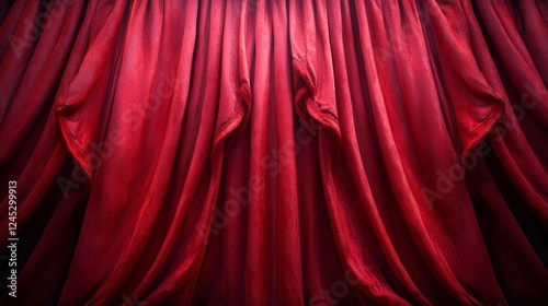 Close-Up View of Rich Red Velvet Curtain Folds with Intricate Detailing. Generative AI