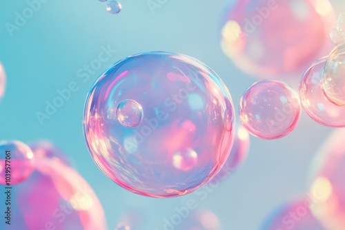 Close-Up View Of Shimmering Pink Bubbles In Transparent Water with selective focus