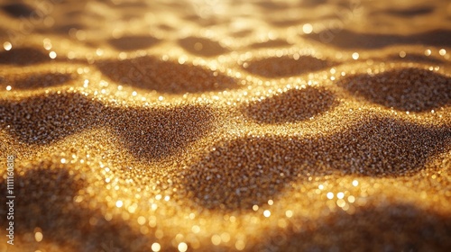 Close-up View of Sparkling Golden Sand with Soft Dunes and Sunlight Reflecting on the Surface, Evoking Serenity and Natural Beauty in a Desert Landscape