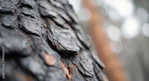 Close-up view of textured black bark on a tree after a forest fire in the wilderness area