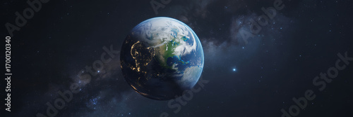Close-up view of the earth from space showing continents and oceans with atmospheric glow