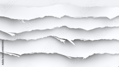 Close-up View of Torn White Paper Layering, Creating Texture and Depth with Varying Shades of White for Artistic Use in Design and Backgrounds