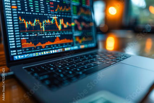 Close-up view of vibrant stock market data displayed on a laptop screen, focusing on the intricacies of market trends