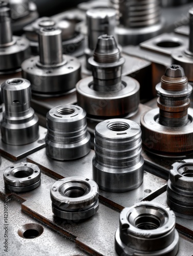 Close-up view showing different sizes and types of lathe tools prepared for changeover on the machine - sizes metalworking industrial tools
