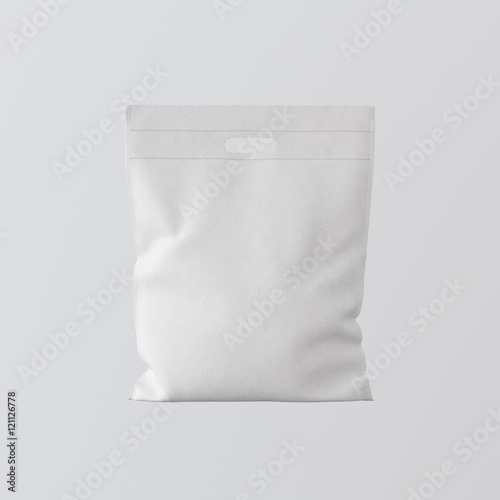 Closeup White Color Leather Small Bag Isolated Center Gray Empty Background.Mockup Highly Detailed Texture Materials.Space for Business Text Message. Square. 3D rendering.