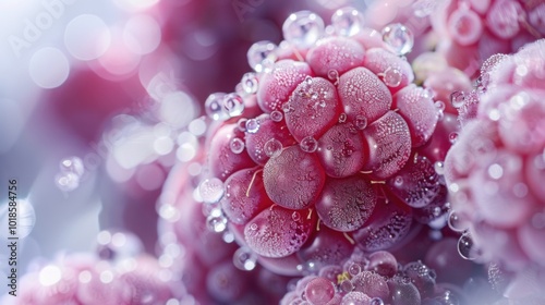 Close-up X-ray of a whole blackberry, white background, beads of water, frosted glass effect, intricate and sharp, macro focus.