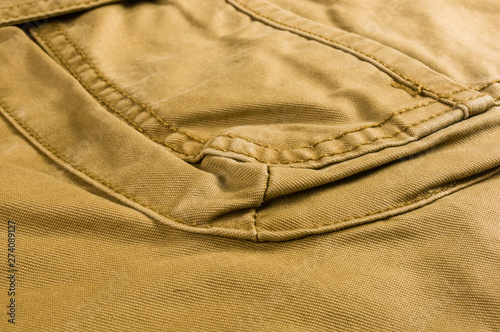 clothing items stonewashed cotton fabric texture with seams, clasps, buttons and rivets, macro