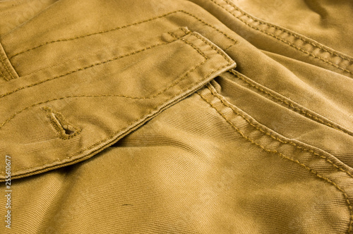 clothing items washed cotton fabric texture with seams, clasps, buttons and rivets