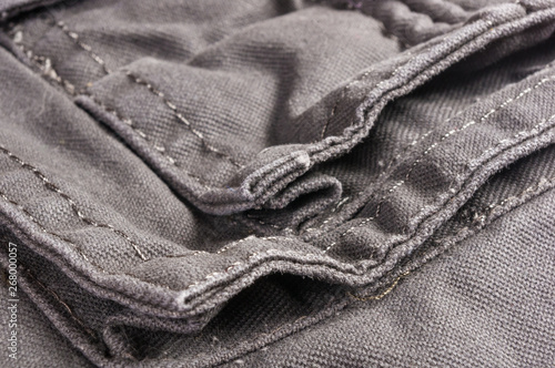 clothing items washed cotton fabric texture with seams, clasps, buttons and rivets