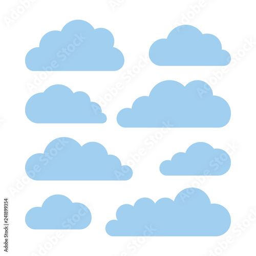 Cloud Computing Illustration - Set of 8 blue cloud shapes isolated on white background