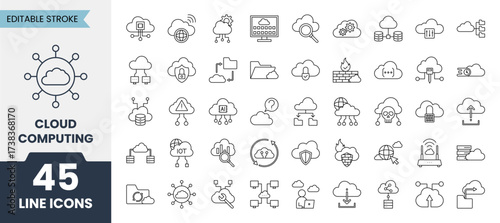 Cloud computing line icons set with editable stroke. Containing Cloud technology, data center, connection network, digital service, database, download, upload and more. Vector illustration