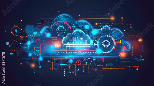 Cloud Computing with DevOps Integration and Development Symbols Vector Illustration Highlighting Streamlined Operations
