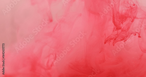Cloud dye. Blur paint splash. Red pink color defocused fog floating pigment. Mystic curl liquid haze blend bright abstract background.