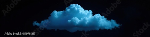Cloud isolated on a black background with an inky blue hue, cloud, single