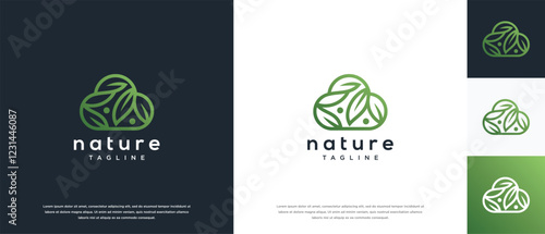 Cloud logo design with nature leaves. Cloud nature logo design vector icon.