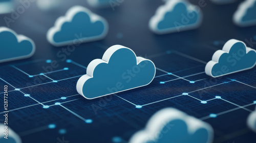 Cloud storage Globalization communication network 3D cloud icons on digital background representing technology and connectivity