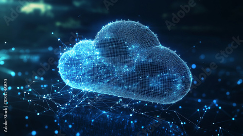Cloud technology connects people and devices, like a futuristic line reaching out, allowing for seamless communication and access to information.low poly digital wireframe.