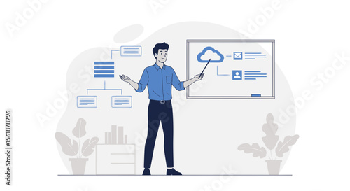 Cloud Technology Presentation With A Business Professional Illustration Concept