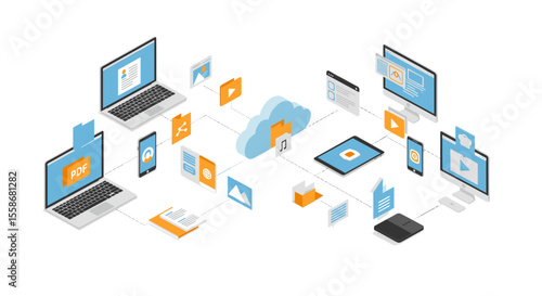 Cloud technology vector illustration: flat style concept for digital data sharing and storage design