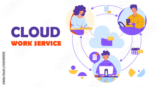 Cloud work service flat vector landing page template. Remote work Digital communication.