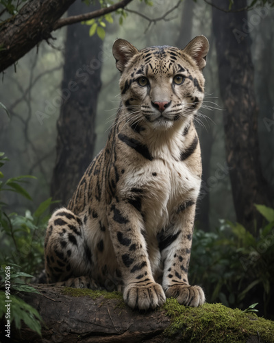 Clouded Leopard in Misty Forest