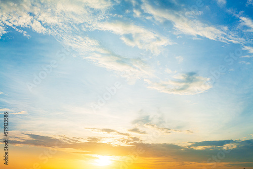 Clouds and orange sky,Sky beautiful sunset background in twilight time, colorful scene, amazing nature landscape image