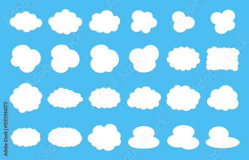 Clouds collection. Cloud icon. Abstract white cloudy set isolated on blue background. Vector illustration