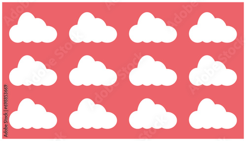 Clouds vector seamless pattern on pink background. Collection of white clouds.