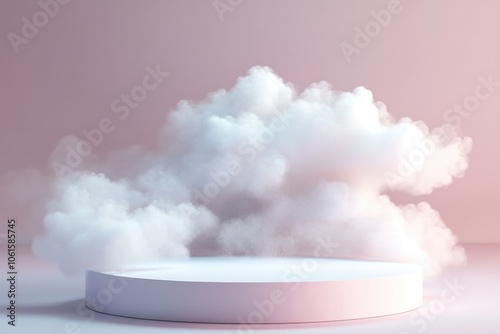 Cloudy Abstract Showcase: Futuristic Cloud Formation on Silver Pedestal in a Minimalist Studio Room