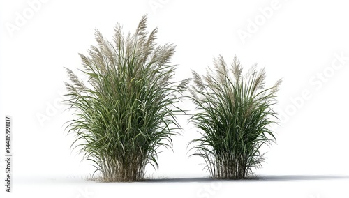 Clumps of grass are depicted on a see-through background, the result of a 3D rendering process