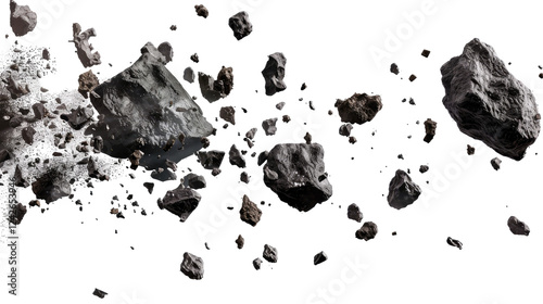Cluster of Asteroids Floating in Space isolated on transparent white background, clipping path
