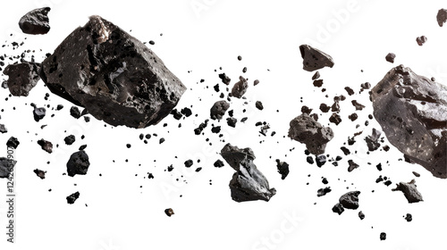 Cluster of Asteroids Floating in Space isolated on transparent white background, clipping path