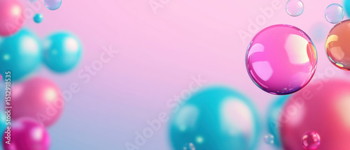 Cluster of colorful soap bubbles floating against soft pastel background, creating whimsical and joyful atmosphere