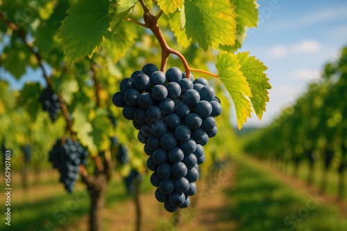Cluster of Grapes Draped on a Vine During Fall Harvest