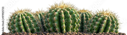 Cluster of Green Cacti with Spines on Transparent Background - Desert Plant for Botanical, Gardening, and Nature Projects