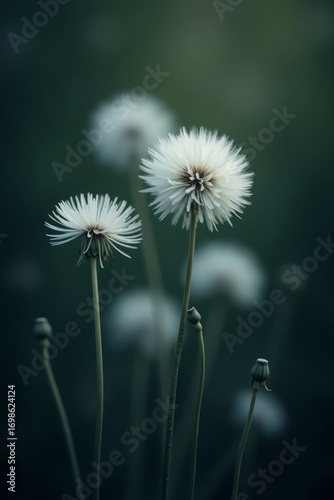 Cluster of White Dandelion Puff Flowers – Soft Dreamy Nature Macro Background
