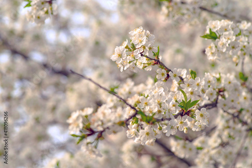 Clustered blooms of cherry branches in the springtime