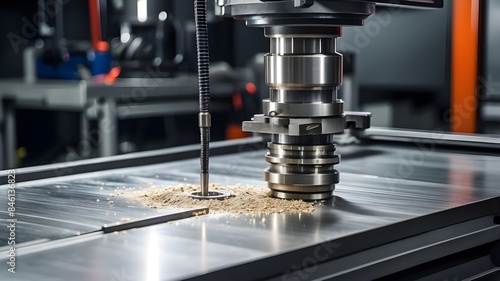CNC milling machine for metalworking. cutting metal using contemporary processing techniques. shallow field of view. cutting-edge machining idea.