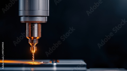 CNC Milling Machine with Drill Bit Closeup Industrial Automation
