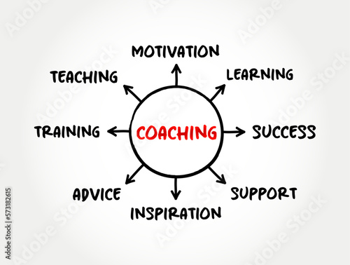 Coaching - form of development in which an experienced person supports a learner in achieving a specific personal or professional goal, mind map concept background